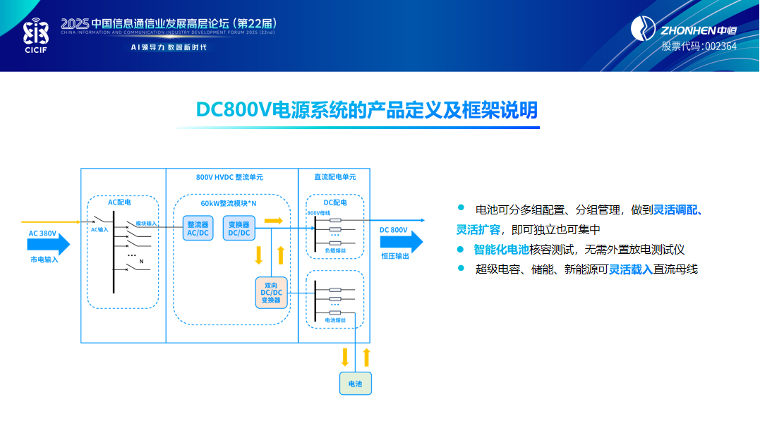 在2025中國信息通信業發展高層論壇上,杭州中恒電氣股份有限公司IDC事業部總經理李善策先生發表了題為“AIDC直流800V產品定義與探討”的精彩演講,為與會者呈現了數據中心電源系統在人工智能時代的新發展與新機遇。